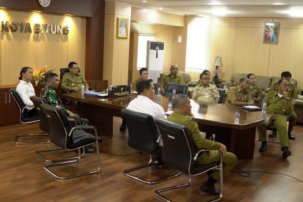 Rapat yang berlangsung secara virtual melalui Zoom Meeting ini dilaksanakan di ruang kerja Kantor Walikota Bitung pada Senin (20/10).