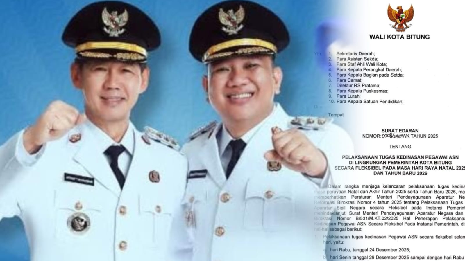 TNews, BITUNG– Pemerintah Kota Bitung memberlakukan kebijakan kerja fleksibel bagi Aparatur Sipil Negara (ASN) selama masa libur Natal 2025 dan Tahun Baru 2026.