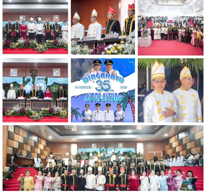 TNews, Bitung Sulawesi Utara — Suasana penuh kebanggaan dan kebersamaan mewarnai penyelenggaraan Rapat Paripurna DPRD Kota Bitung, sebagai rangkaian peringatan puncak Hari Ulang Tahun (HUT) Kota Bitung ke-35 tahun, Senin (13/10/2025).