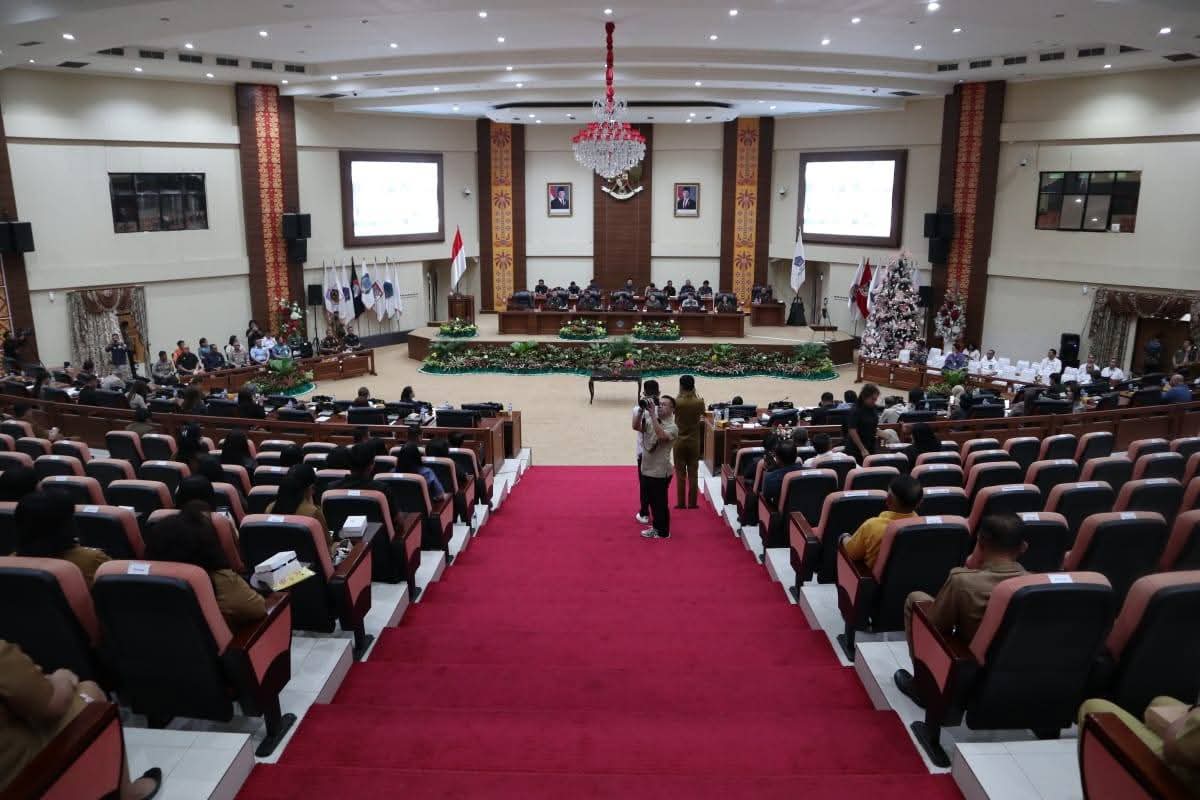 TNews, SULUT – Dewan Perwakilan Rakyat Daerah (DPRD) Provinsi Sulawesi Utara (Sulut) menggelar Rapat Paripurna Penyampaian/Penjelasan Gubernur terhadap Rancangan Peraturan Daerah (Ranperda) Anggaran Pendapatan Belanja Daerah (APBD) Tahun Anggaran 2026 sekaligus Pemandangan Umum Fraksi atas Ranperda tersebut serta Tanggapan/Jawaban Gubernur terhadap Pemandangan Umum Fraksi, Senin (24/11) siang bertempat di Ruang Rapat Paripurna DPRD Sulut.