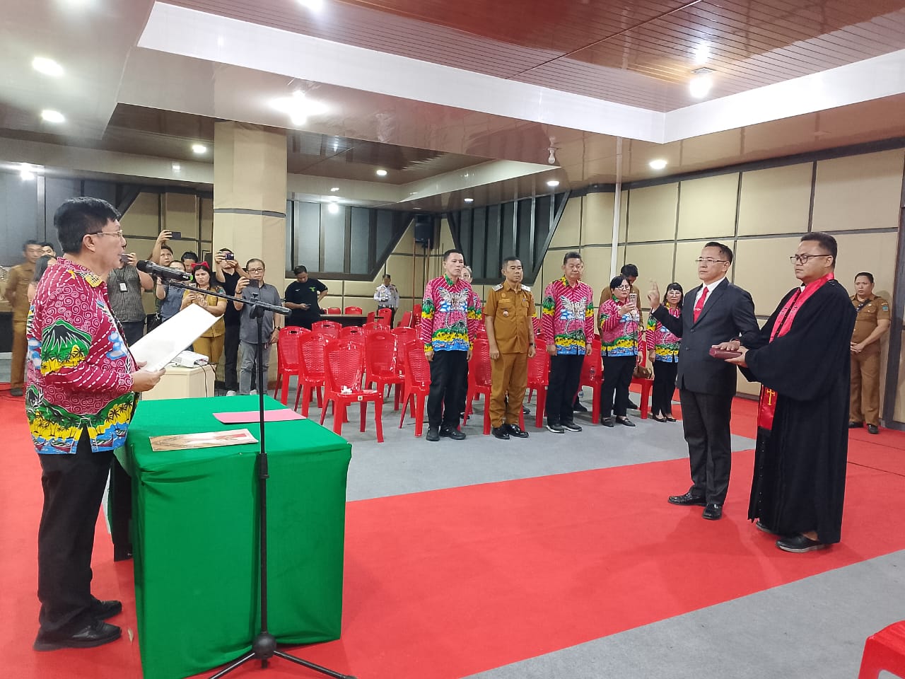 Prosesi pelantikan dan pengambilan sumpah jabatan berlangsung khidmat di Aula Kantor Bupati Minahasa Utara sekitar pukul 20:10 WITA. Mewakili Bupati, Sekretaris Daerah Kabupaten (Sekkab) Minut, Novly Wowiling, memimpin langsung jalannya acara yang dihadiri oleh sejumlah pejabat eselon di lingkup Pemkab Minut.