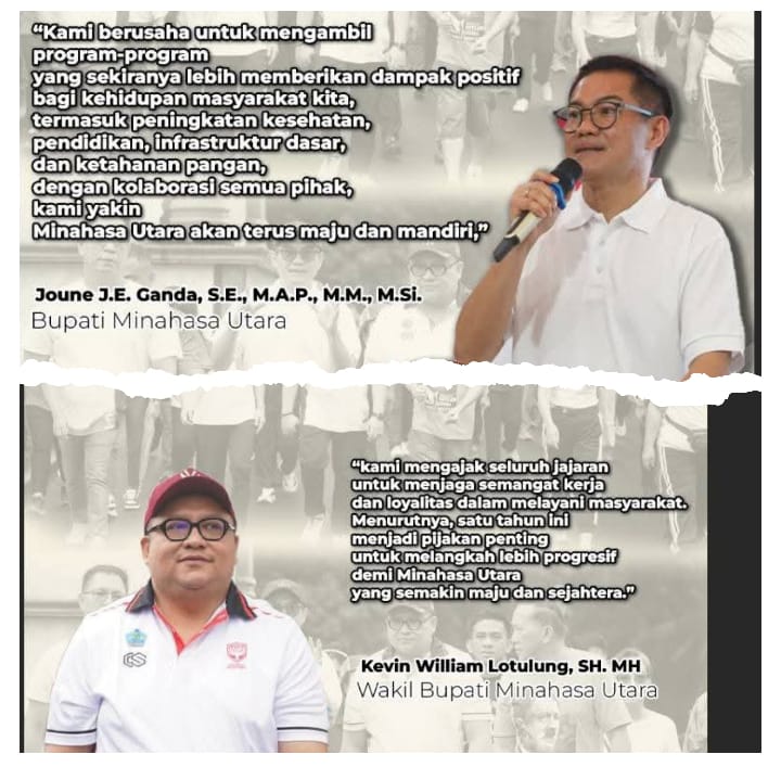 Bupati mengakui bahwa meski banyak capaian yang diraih, masih ada harapan masyarakat yang perlu diwujudkan. Pemerintah berkomitmen untuk mengoptimalkan dukungan anggaran, baik dari pusat maupun daerah, guna mengeksekusi program-program prioritas. Acara ditutup dengan doa bersama, membawa harapan agar kepemimpinan Joune-Kevin di periode kedua ini terus konsisten membawa perubahan positif bagi seluruh warga Kabupaten Minahasa Utara. (mt/*)