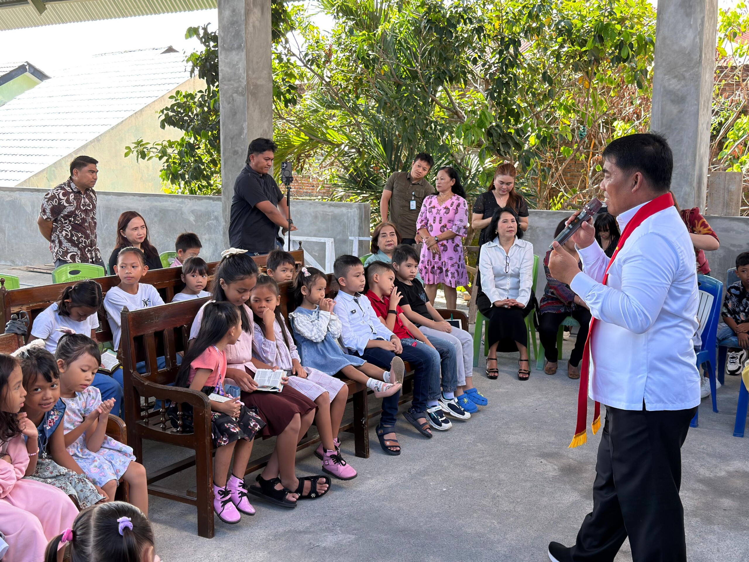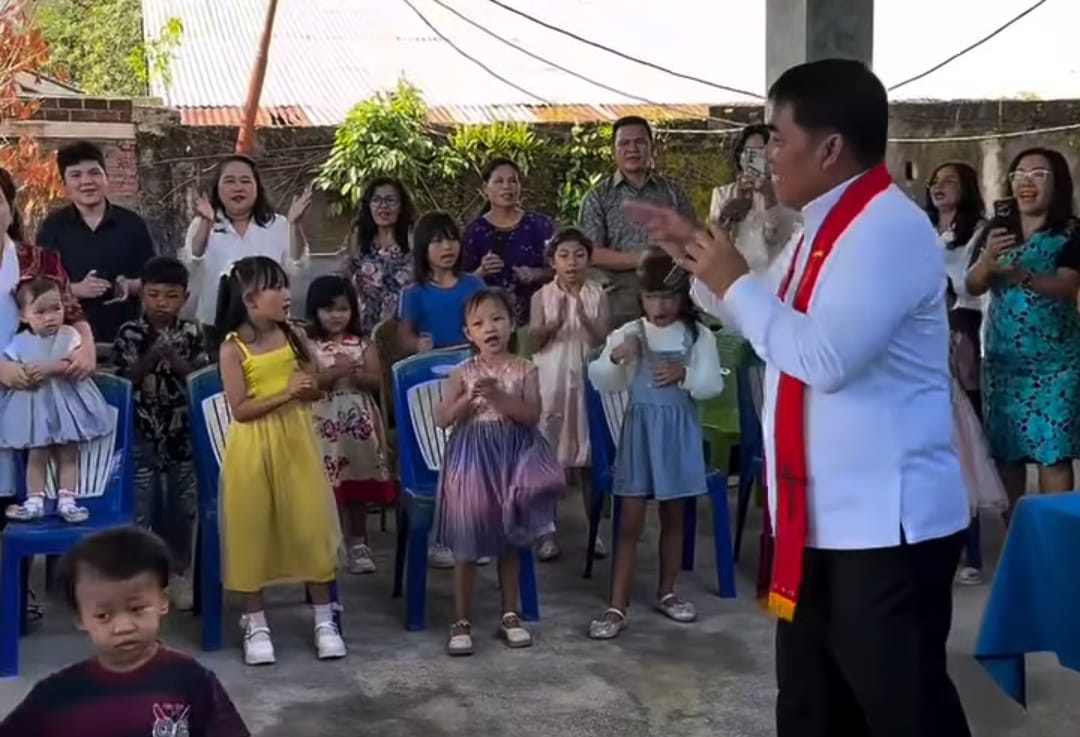 Didampingi sang istri, kehadiran Gubernur disambut dengan sorak sorai dan keceriaan anak-anak jemaat. Menariknya, peran ini bukanlah hal asing bagi Yulius; jauh sebelum terjun ke dunia pemerintahan, ia memang dikenal aktif sebagai guru Sekolah Minggu atau yang akrab disapa “Engku.”